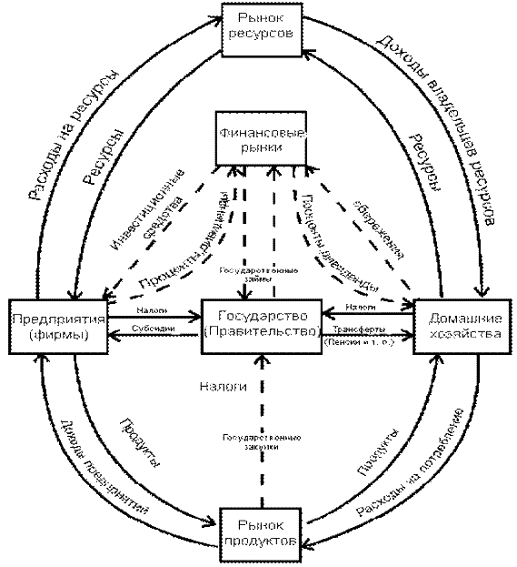 В дополнение к уже указанным отношениям между предприятиями и домашними хозяйствами проанализируем взаимосвязи, которые появляются при наличии новых субъектов и рынков.