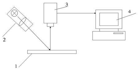 Рисунок 2.1 – Схема исследовательского комплекса: 1 – исследуемая поверхность; 2 – источник светового потока; 3 – видеокамера с оптической системой; 4 – компьютер