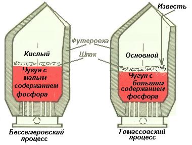 Рисунок 49 – Различия конвертеров Бессемера и Томаса
