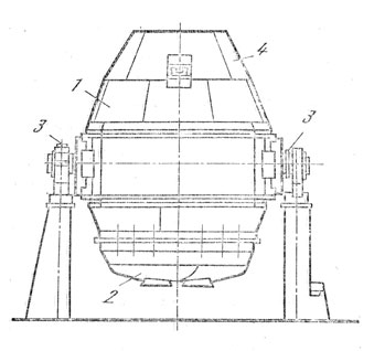1 - корпус; 2 - днище; 3 - опорные подшипники; 4 – шлем