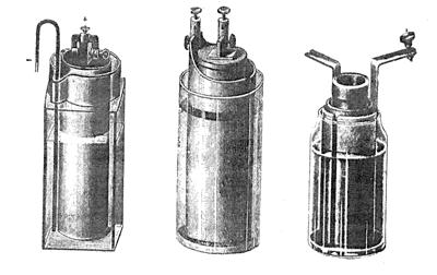 На рубеже XIX—XX вв. в металлургии для получения наиболее качественных сортов стали и цветных металлов все шире начинают использовать энергию электрического тока. Возможность электроплавки металлов впервые была установлена русским физиком В.В. Петровым. В 1802 г. он создал крупнейшую в то время гальваническую батарею, состоящую из 2100 медно-цинковых элементов. С помощью этого источника тока было открыто явление электрической дуги. Петров первый указал на возможности ее практического применения для освещения, электроплавки и электросварки металлов. Русский ученый исследовал также процессы окисления металлов и восстановления их из руд в зоне горения электрической дуги. На рисунке 52 показаны подобные гальванические батареи, разработанные Лекланше и Даниэлем.