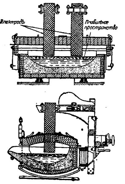 Рисунок 56 - Схема устройства дуговой электрической печи системы Эру
