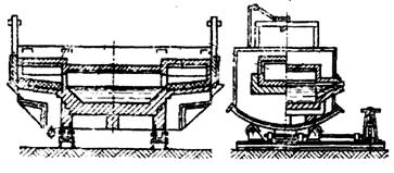 В 1915 г. на Мотовилихинском заводе в Перми была пущена первая сталеплавильная однофазная печь сопротивления с нагревом ванны от расположенных над ней угольных стержней, накалявшихся электрическим током. Эта печь была сконструирована русскими инженерами С.С.Штейнбергом и А.Ф.Грамолиным (рисунок 61). В дальнейшем аналогичные печи емкостью 0,75-1,0 т были установлены на Златоустовском, Надеждинском и других уральских заводах и успешно выполняли военные заказы во время первой мировой войны.