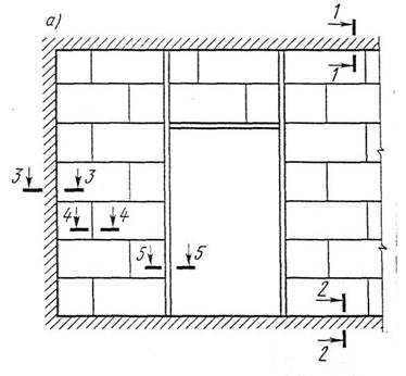 Рис. 11. Перегородки из кирпича. 1-арматура.