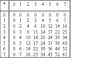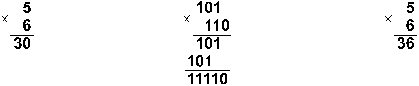 Ввиду чрезвычайной простоты таблицы умножения в двоичной системе, умножение сводится лишь к сдвигам множимого и сложениям.