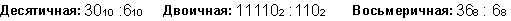 Ответ: 30: 6 = 510 = 1012 = 58.