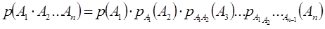 р (А1 . А2 . ……. Аn) = р (А1) . р (А2) .….. р (Ап).