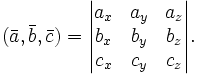 в правой декартовой системе координат равно определителю матрицы, составленной из векторов