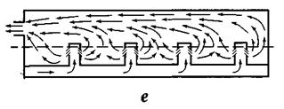 | Рис.2.5. Способы подачи воздуха: д) верхняя сосредоточенная подача воздуха (бесканальная); е) нижняя подача воздуха. |
