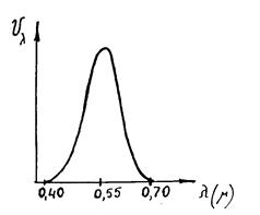 - так называемая ФУНКЦИЯ ВИДНОСТИ, которая показывает среднюю чувствительность человеческого глаза к свету разных длин волн.