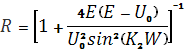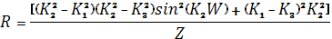 Чтобы вычислить коэффициенты прохождения и отражения (1.2.2), надо выразить амплитуды А3 и В1 через амплитуду падающей волны A1. Для этого используем условие непрерывности волновой функции и потока частиц при X = ±W/2. В результате получим