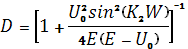 Согласно (1.5.3) при прохождении частиц над потенциальной ямой, как и в случае потенциального барьера, коэффициент прохождения осциллирует с увеличением энергии частицы (рис. 1.7). В обоих случаях осцилляции имеют одну и ту же физическую природу. Квазиклассически их можно трактовать как результат интерференции электронных волн, отраженных от скачков потенциала на границах барьера или ямы. Однако, при близком качественном характере зависимостей имеются и заметные различия. Так, при равных значениях ширин и скачков потенциала барьера и ямы размах осцилляции коэффициента D при прохождении частиц над чем при прохождении над ямой.