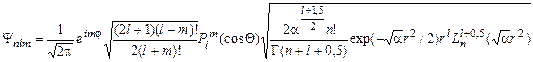 - обобщенный многочлен Лагерра; r,Θ,φ- сферические координаты от центра ямы; α - параметр крутизны удерживающего потенциала U(r,Θ,φ)=αr2. Так как каждое значение