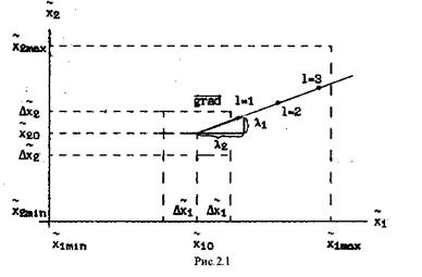 в) определить минимальное число шагов в направлении градиента в допустимой области п= min ni. Если оно неудовлетворительно, то масштабный коэффициент t необходимо скорректировать таким образом, чтобы получить число п в желаемом интервале (8-10);