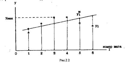 Проделывая эксперименты в каждой точке (с выбранным шагом), построим зависимость функции отклика от номера шага (рис.2.2).