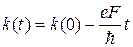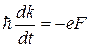 | Рис. 6.8. Движение электрона внутри энергетической зоны в k -пространстве под воздействием приложенного электрического поля (процессы рассеяния не учитываются) |