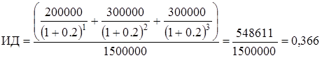Проект считается эффективным, если ИД > 1. Если ИД1 > ИД2, то первый проект эффективнее.