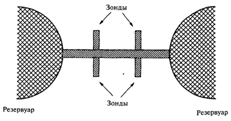| Рис. 6.13. Диаграмма типичной наноструктуры, используемой в экспериментальных измерениях, связанных с квантовым эффектом Холла. |