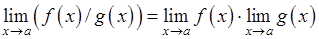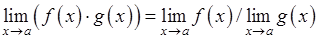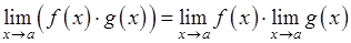 d) Предел произведения двух функций равен произведению пределов этих функций: