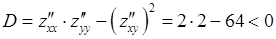 Определитель этой системы отличен от нуля, поэтому система имеет единственное решение – одну точку подозрительную на экстремум.