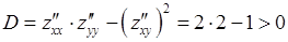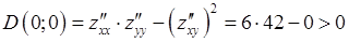 Находим вторые производные и проверяем достаточное условие наличия точек локального экстремума в точке