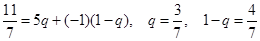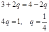 Найдём решение задачи в смешанных стратегиях. Будем считать, что игрок В первую стратегию использует с вероятностью q и с вероятностью (1-q) применяет вторую стратегию. Тогда