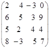 Ответ: игрок А не использует первую и четвёртую стратегии, вторая и третья стратегии используется с равной вероятностью 1/2, игрок В также не использует первую и четвёртую стратегии, вторая стратегия используется с вероятностью ¼, третья стратегия – с вероятностью ¾, при этом цена игры равна 3.5.