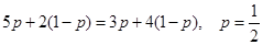 Найдём решение задачи в смешанных стратегиях. Для этого будем считать, что игрок А с вероятностью р использует первую стратегию и с вероятностью 1 – р – вторую.