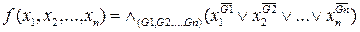 где 1≤k≤n, а конъюнкция берется по всем 2k наборам значений переменных.