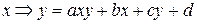 4) при x = 1, y = 0 имеем: 1 = a + b + c + d = a + 1 + 0 + 1 = a, т.е. а = 1.
