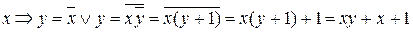 – нет, так как в первом выражении имеется конъюнкция, содержащая две переменные y, а второе выражение содержит два одинаковых слагаемых