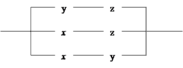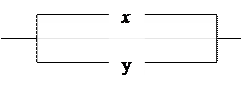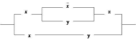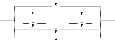 Если контакты x и y соединены параллельно, то цепь замкнута, когда хотя бы один контакт замкнут и разомкнута, когда оба контакта разомкнуты. Ясно, что такой схеме