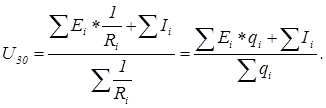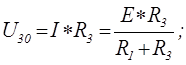 Метод двух узлов. Очень часто встречаются электрические цепи, состоящие из нескольких параллельно соединенных ветвей, т.е содержащие два узла. Разность потенциалов между двумя узлами U30 определяется по формуле:
