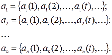 множество всех k-значных последовательностей a таких, что а = { a (1), a (2),…, a (t), …}, где a (i)