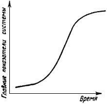 Жизнь технических систем (как и других систем, например, биологических) можно изобразить в виде S‑образной кривой, показывающей, как меняются во времени главные характеристики системы (мощность, производительность, скорость, число выпускаемых систем и т.д.). S‑кривая была получена в результате анализа истории развития множества технических систем.