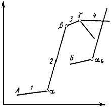 У разных технических систем эта кривая имеет свои индивидуальные особенности. Но на ней всегда есть характерные участки, которые можно представить схематически, с подчеркнутым огрублением: