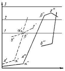 Казалось бы, с момента появления техническая система должна неуклонно (хотя и не очень быстро) развиваться до a', т. е. до момента перехода к массовому применению. На самом деле переход к массовому применению (a") начинается с опозданием и на более низком техническом уровне.