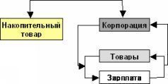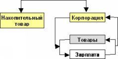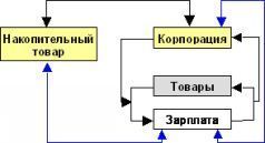 Обратим также внимание на связи между зарплатой и накопительными товарами, и на связи между зарплатой и акциями корпорации (синие стрелки на схеме).