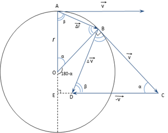 , точка изменит свое положение и окажется в точке B, скорость останется не изменой. Сделаем дополнительные построения: параллельно перенесем вектор начальной скорости в точку C но направим его в противоположную сторону (вектор –