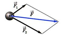 Принцип суперпозиции (наложения) сил заключается в том, что действие нескольких сил можно заменить действием одной -равнодействующей. Например, одновременное механическое действие на данное тело двух других тел, приложенных к одной точке, всегда может быть заменено действием одного тела так, что сила F, описывающая результирующее воздействие, определяется векторной суммой сил F1 и F2, действующих со стороны каждого тела.