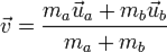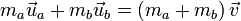 Где v это общая скорость тел, полученная после удара, ma - масса первого тела, ua - скорость первого тела до соударения. mb - масса второго тела, ub -скорость второго тела до соударения. Важно - импульсы являются величинами векторными, поэтому складываются только векторно.