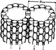 Построены микротрубочки из тубулина - глобулярного белка с молекулярной массой около 40000. Отдельные цепочки связываются друг с другом мостиками, образованными особым белком.