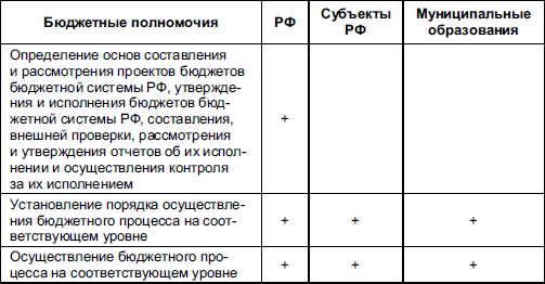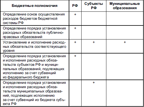 Бюджетные полномочия – это права и обязанности органов государственной власти и иных участников бюджетного процесса по регулированию бюджетных правоотношений, организации и осуществлению бюджетного процесса. В гл. 2 Бюджетного кодекса РФ установлены бюджетные полномочия для каждого уровня публичной власти – федерального, субъектов РФ, а также для муниципальных образований.