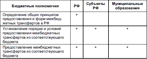 Таблица 2.4 Распределение бюджетных полномочий в части межбюджетных трансфертов
