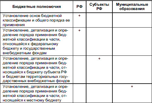 Таблица 2.6 Распределение бюджетных полномочий по установлению и применению бюджетной классификации РФ