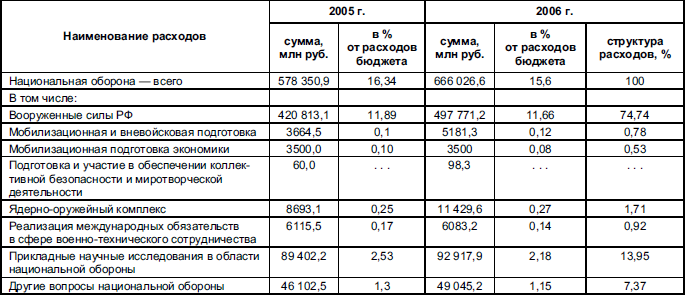Таблица 5.4 Расходы на национальную оборону в 2004–2006 гг.