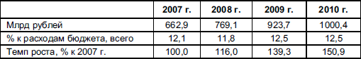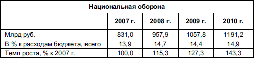 Динамика расходов на национальную оборону в 2007–2010 гг. приведена в табл. 5.5. [26]