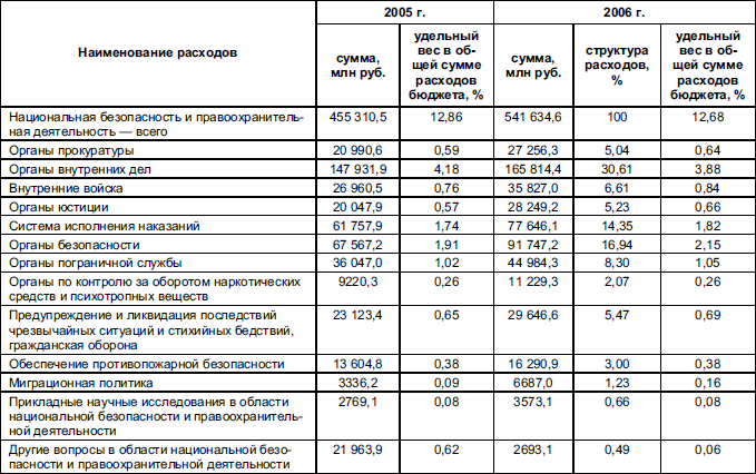 Таблица 5.6 Расходы на национальную безопасность и правоохранительную деятельность в 2005–2006 гг.