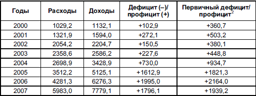 Таблица 6.3 Профицит федерального бюджета РФ в 2000–2007 гг., млрд руб. [37]
