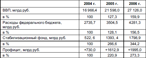 Таблица 6.4 Основные макроэкономические и бюджетные показатели Российской Федерации в 2004–2006 гг. [42]